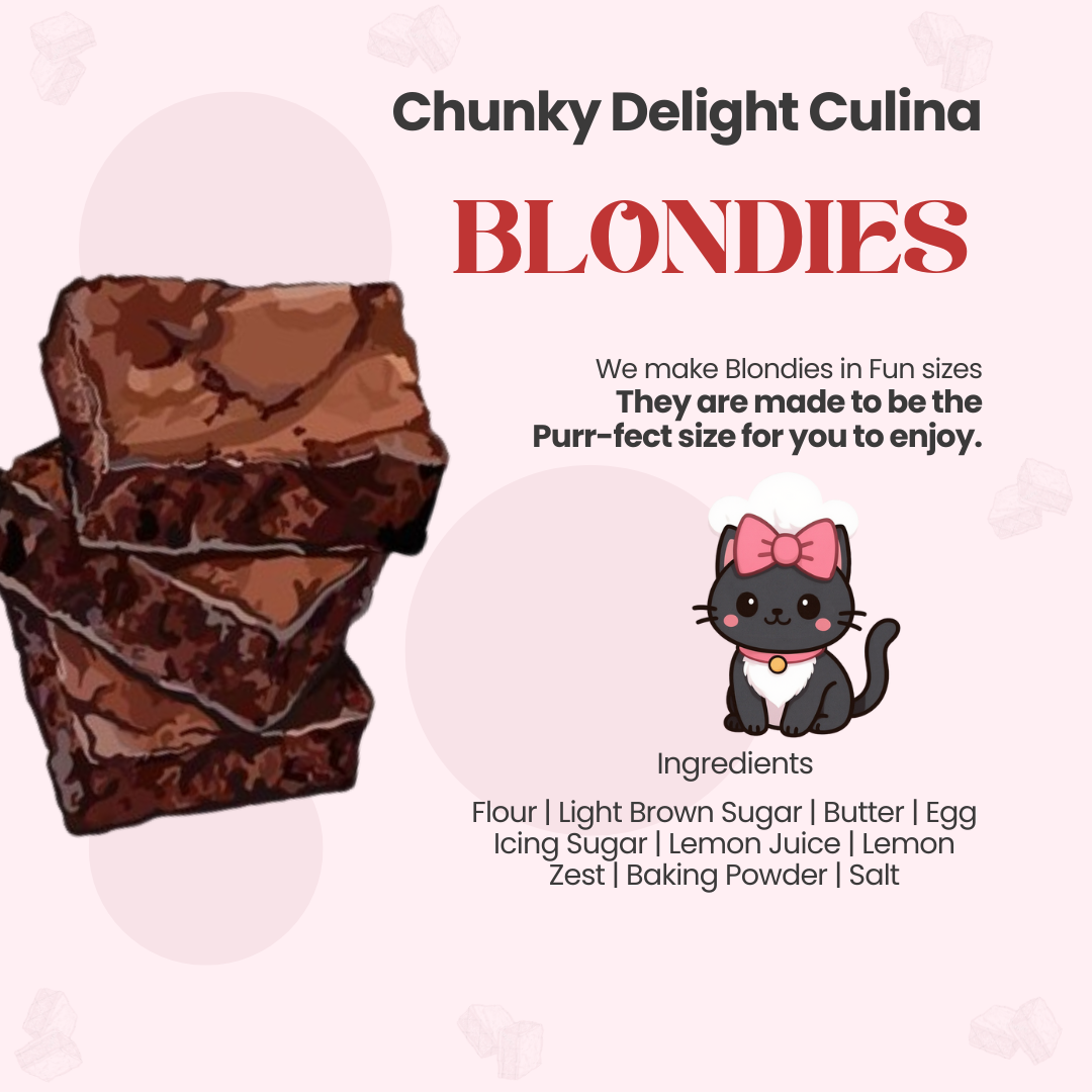 Bright, zesty, and irresistibly soft, this golden blondie bursts with fresh lemon juice and zest, balanced by the richness of real butter and light brown sugar. Finished with a tangy lemon glaze drizzle, it’s a Chunky Delights treat that’s as refreshing as it is indulgent, baked fresh in South Africa.